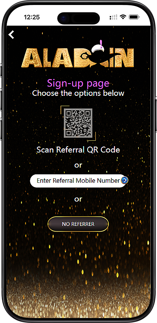 Ensure your referral number or QR belongs to a valid Aladdin99 agent for accurate linkage.